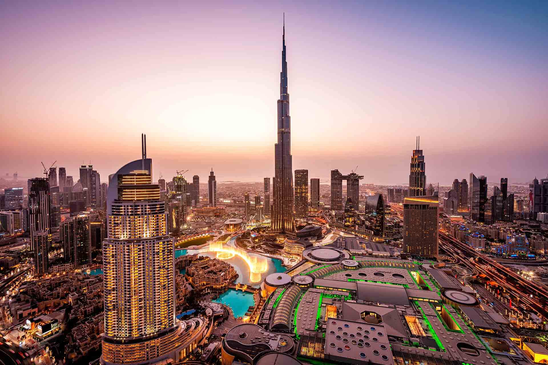 Дубай – один из эмиратов и его одноименная столица. Сверкающий мегаполис был создан в пустыне менее, чем за полвека. Дубай блистает своими небоскребами, шикарными магазинами и ресторанами. В Дубае находится самое высокое здание мира Бурдж Халифа, самый большой в мире торговый и развлекательный комплекс Dubai Mall, самые большие поющие и танцующие Дубайские фонтаны.